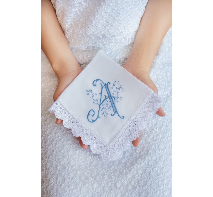 A monogrammed handkerchief is a beautiful and meaningful accessory for a bride on her wedding day. The handkerchief can be embroidered with the bride's initials, along with the date of the wedding, to serve as a special memento of the occasion.